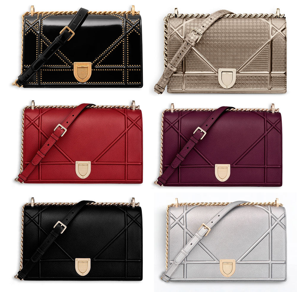 La línea Diorama se compone de embragues, bolsos y carteras en diferentes materiales y diseños. A partir de 2015, su alineación ha cambiado continuamente. En los últimos años, Dior ha estado experimentando con formas, pieles, colores brillantes, estampados de pájaros y flores y varios patrones.